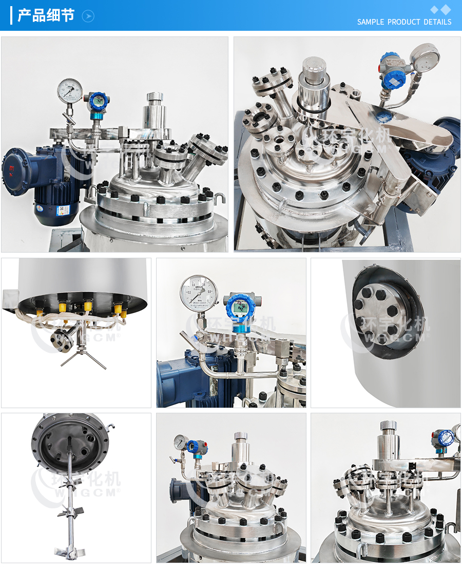 其他附件 如果用戶在釜蓋、釜體開口、內(nèi)部結(jié)構(gòu)、壓力高低、攪拌槳葉、及增加其他輔助裝置(如冷凝回流裝置、冷凝器、恒壓加料罐、接收裝置)等有特殊要求,可完全按用戶的要求加工制造